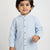 A classic Mandarin-collar blue shirt that keeps your little one looking sharp and comfy all day