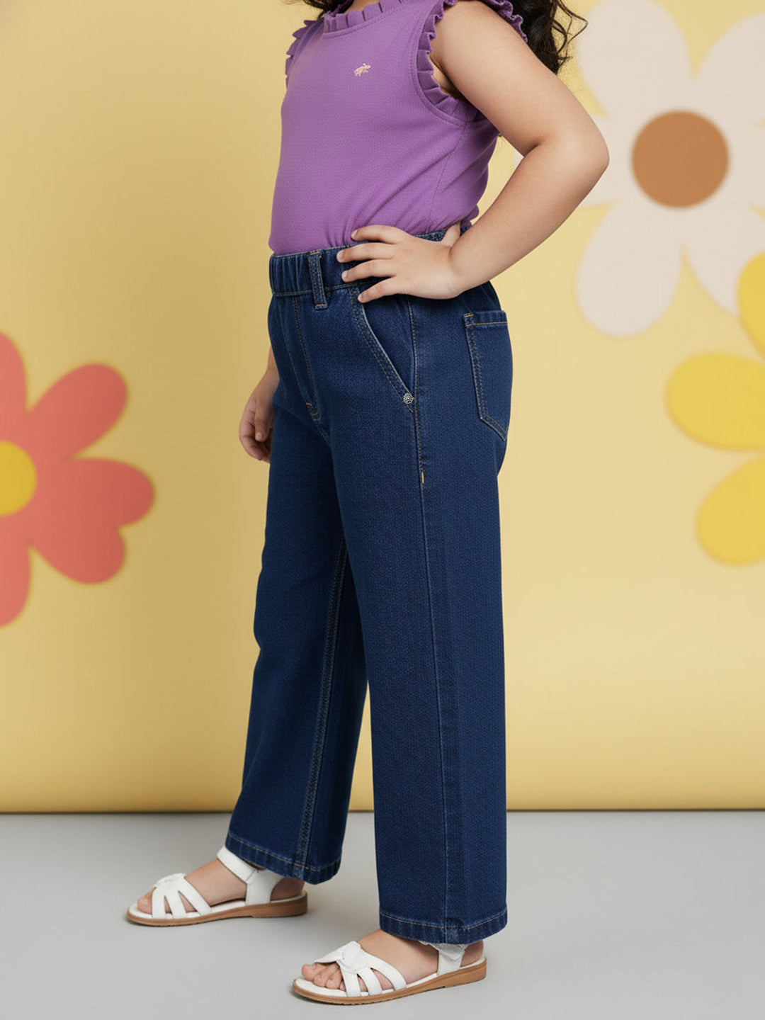Indigo 100% Cotton Comfortable and Stylish Wide Leg Jeans for Girls