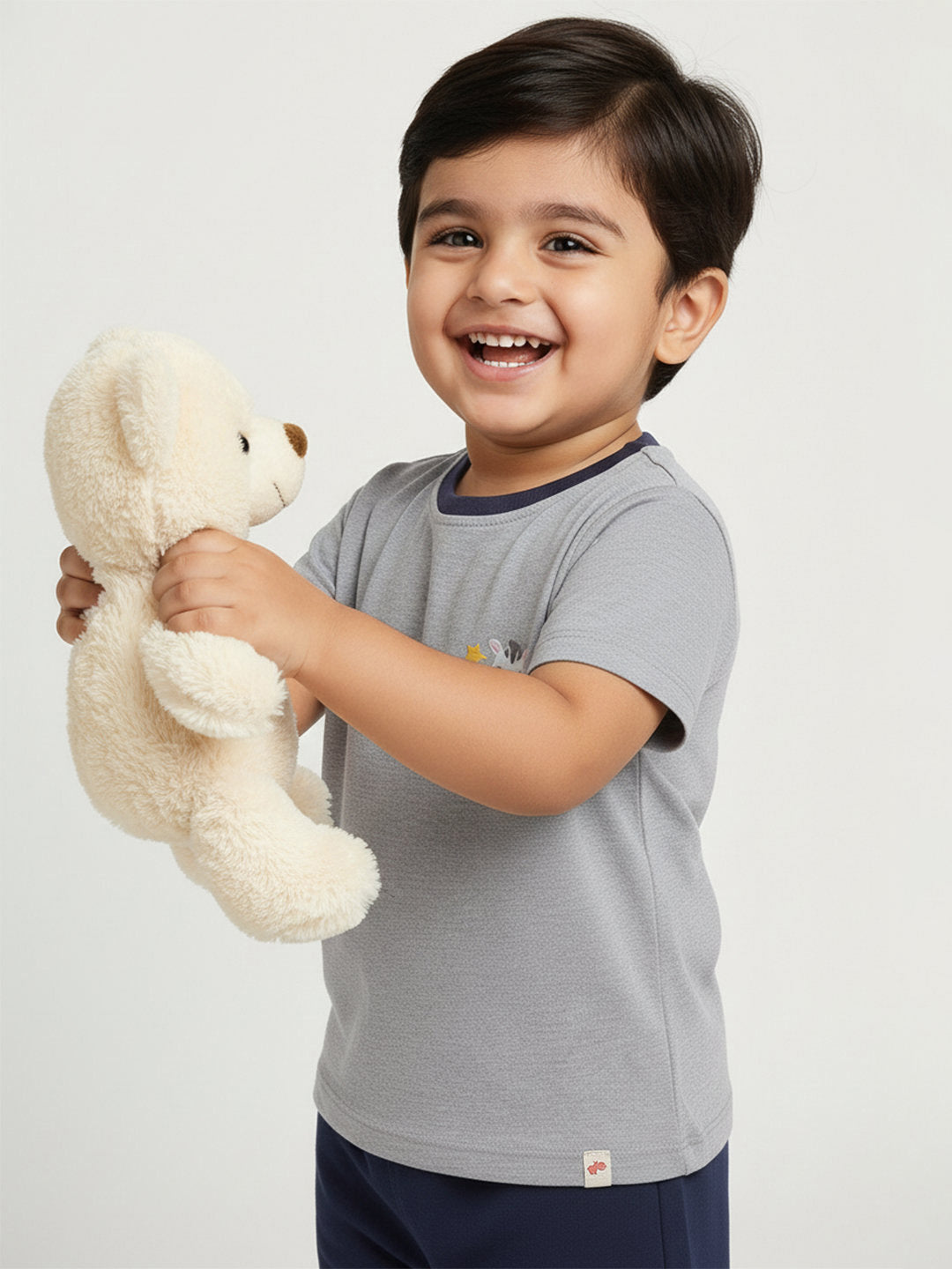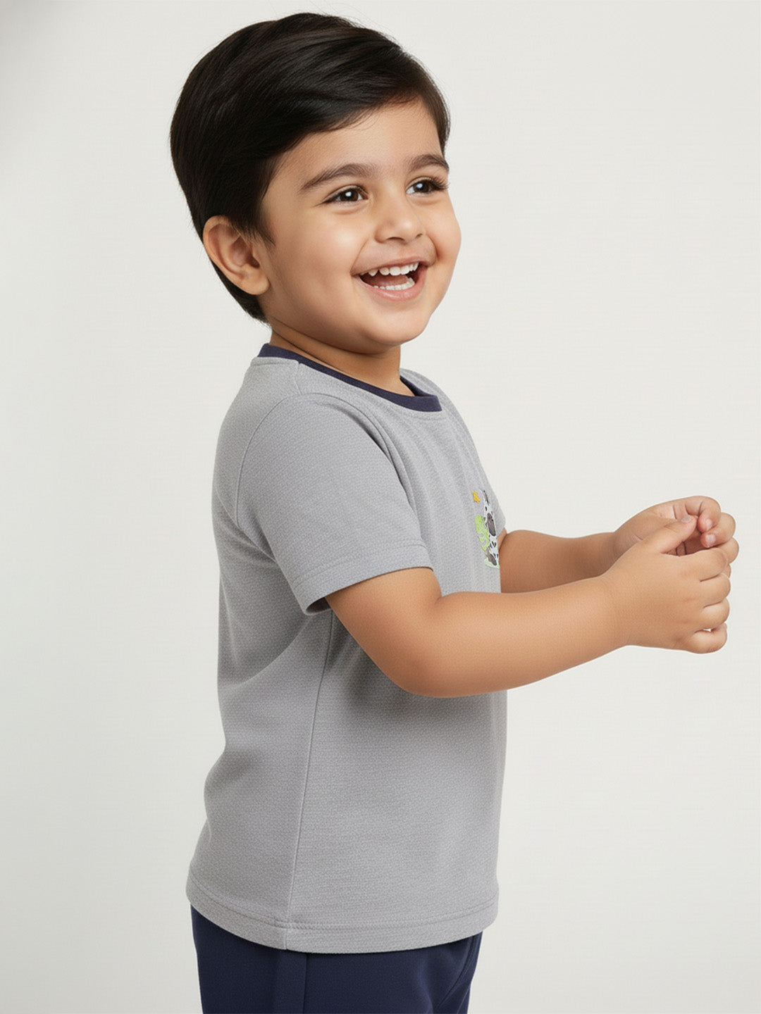 Grey mélange regular fit t-shirt with cute animal print and navy detailing that's super comfortable and effortlessly easy to pair with anything.